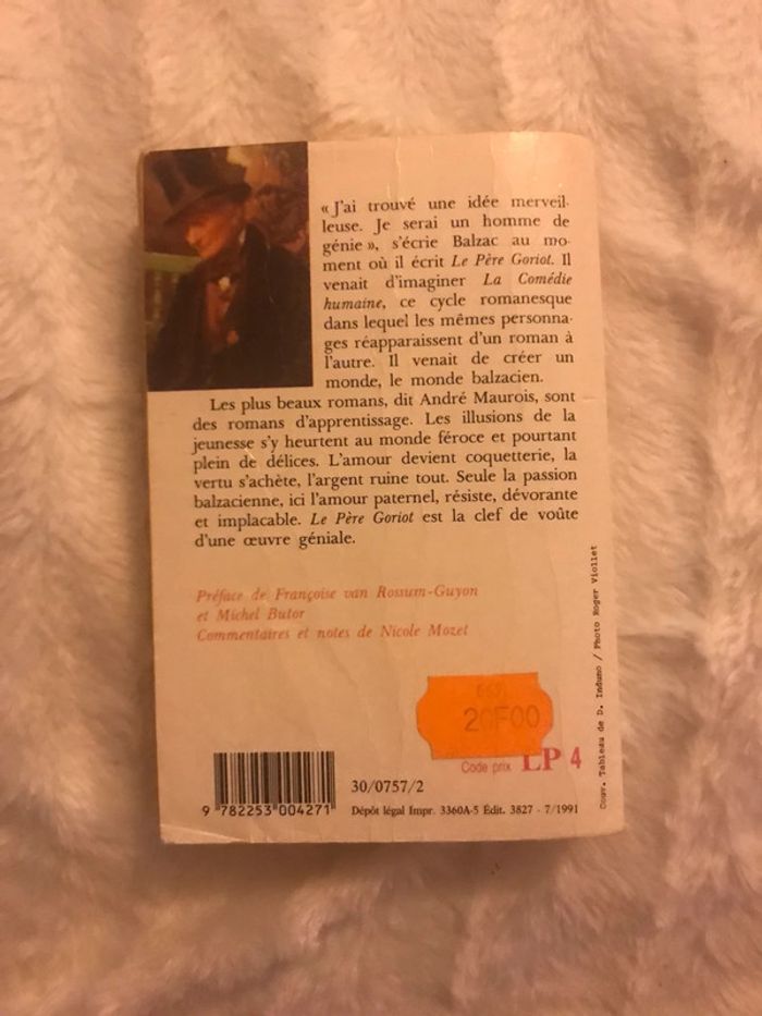 Vend livre « le père Goriot » de Balzac la couverture est abîmé mais l’intérieur du livre est en bon état
