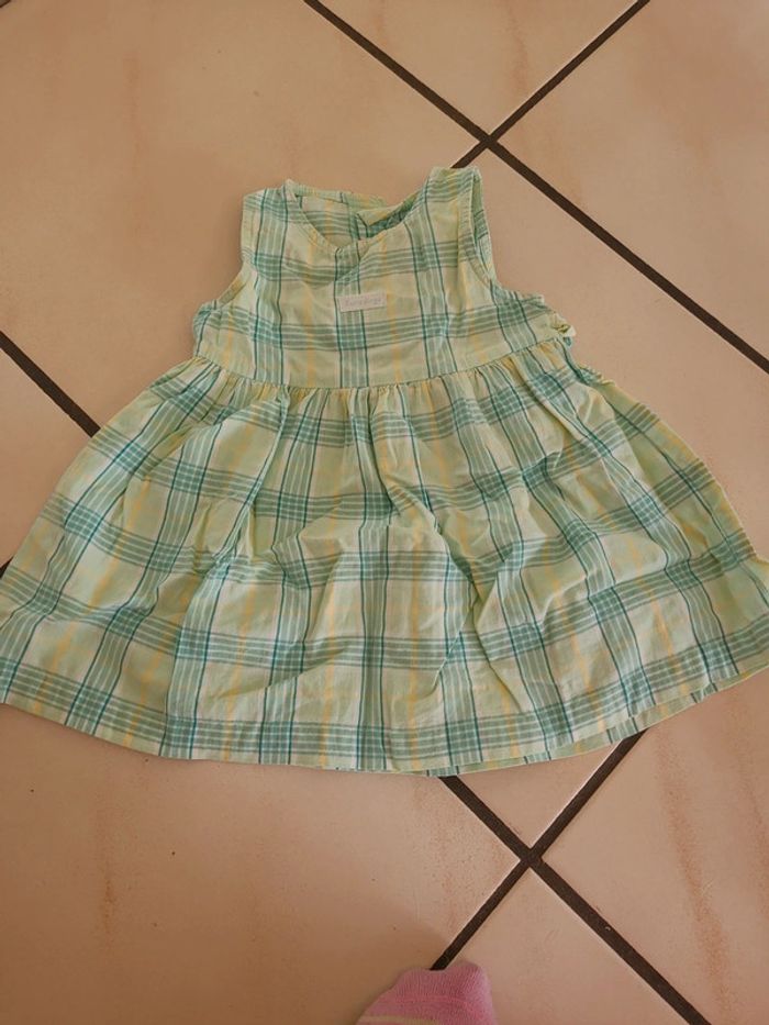 Robe à carreaux SUCRE D'ORGE tkns verts et jaune Taille 6 mois