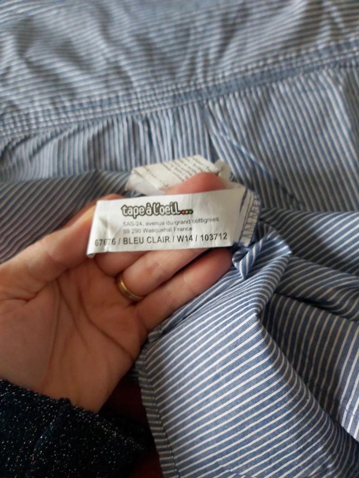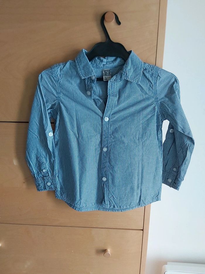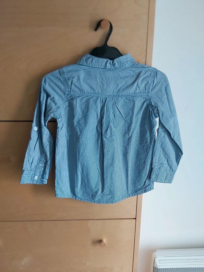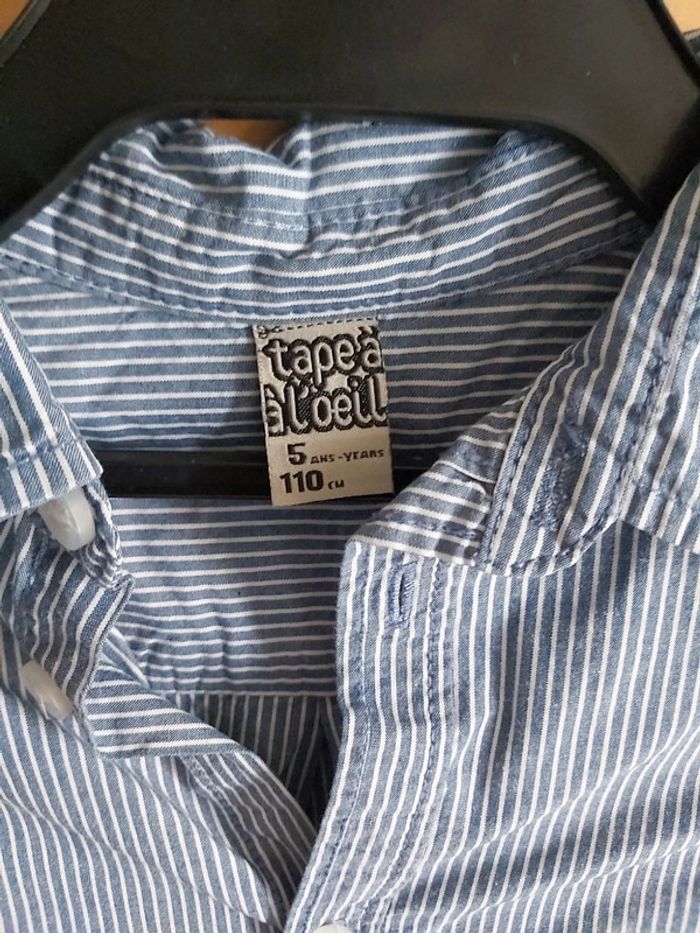Chemise bleue et blanche rayé. Manches longues retroussables. 100% coton. Peu portée. #clairou44_cinqans