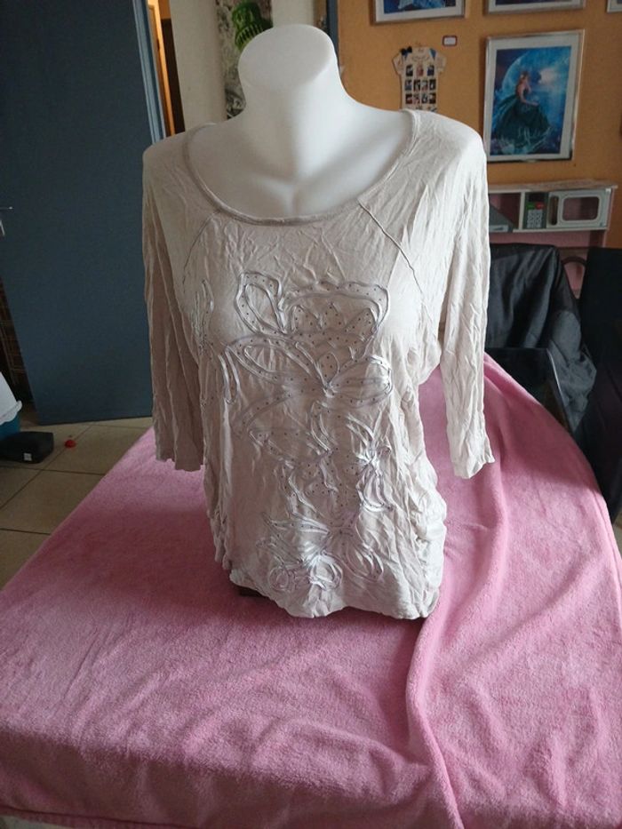 Blouse manche 3/4 couleur crème je pense taille 46/48