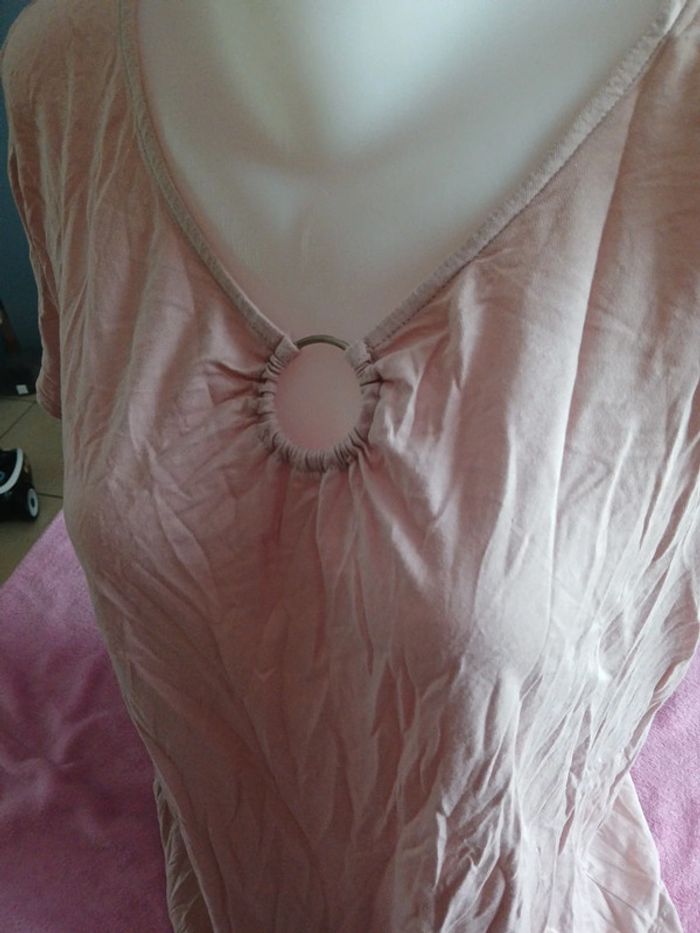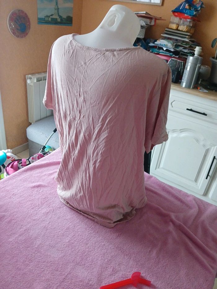 Blouse manche courte couleur rose pale plus d'étiquette mais doit correspondre à un 48