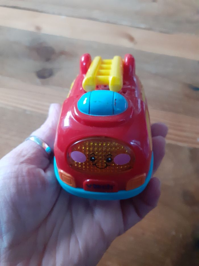 Tut tut Barnabé le pompier en bon état, il manque un peu de peinture, beacoup utilisé. Le cache des piles est cassé.