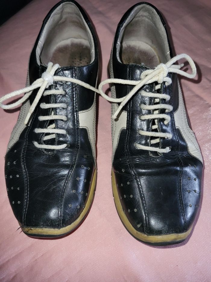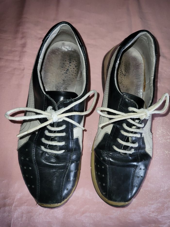 Chaussure tout cuir noir blanc a lacets , cuir interieur exterieur t 37, inusable