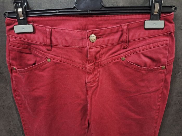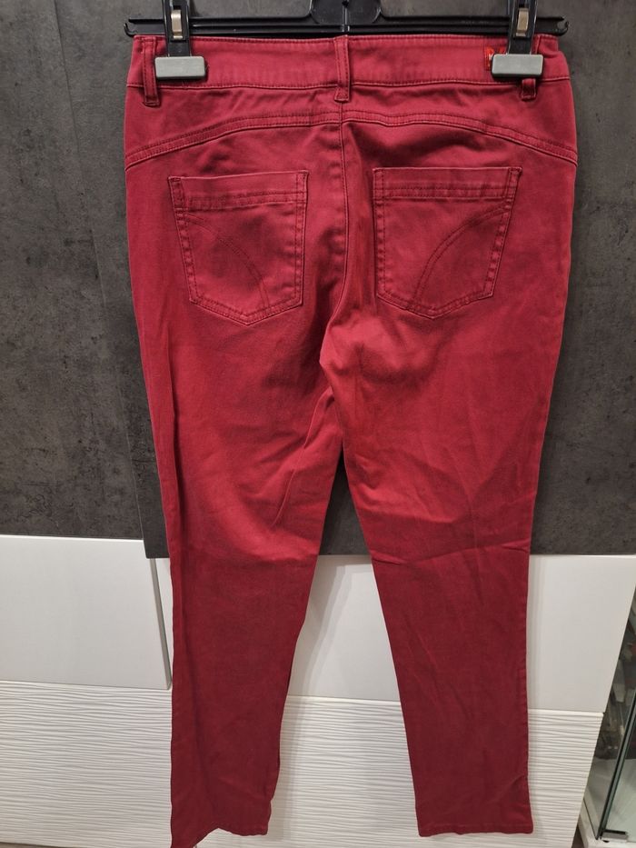 Joli pantalon droit bordeaux, 4 poches, bouton + fermeture éclaire, marque Miss Captain, taille 36, peu porté en très bon état
