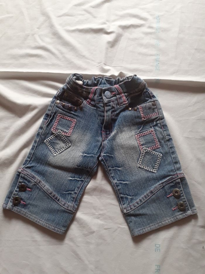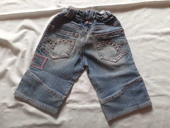 Pantacourt bleu motifs roseset blancs - photo numéro 1