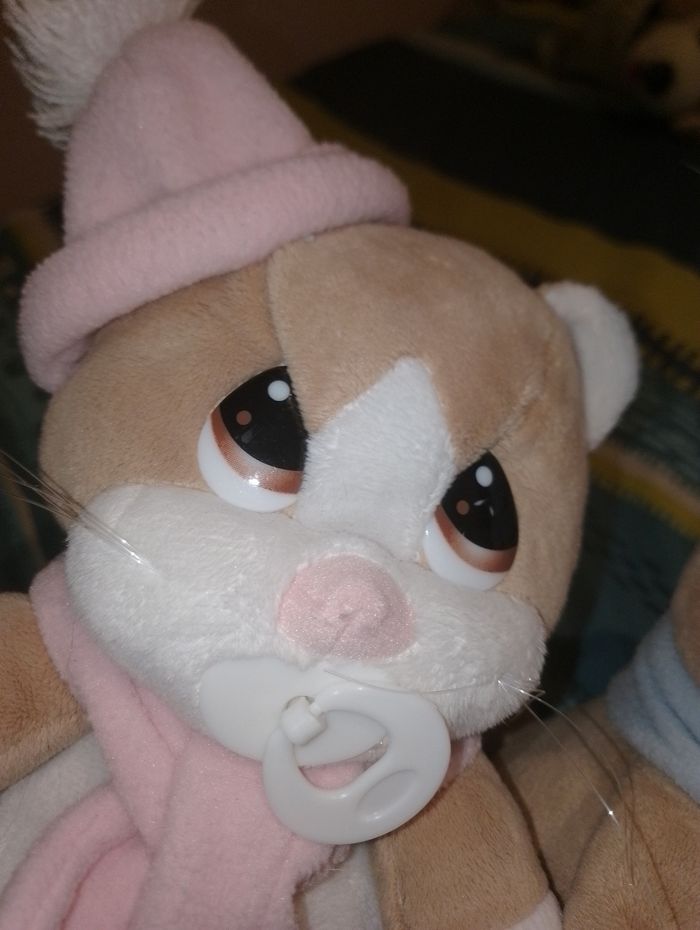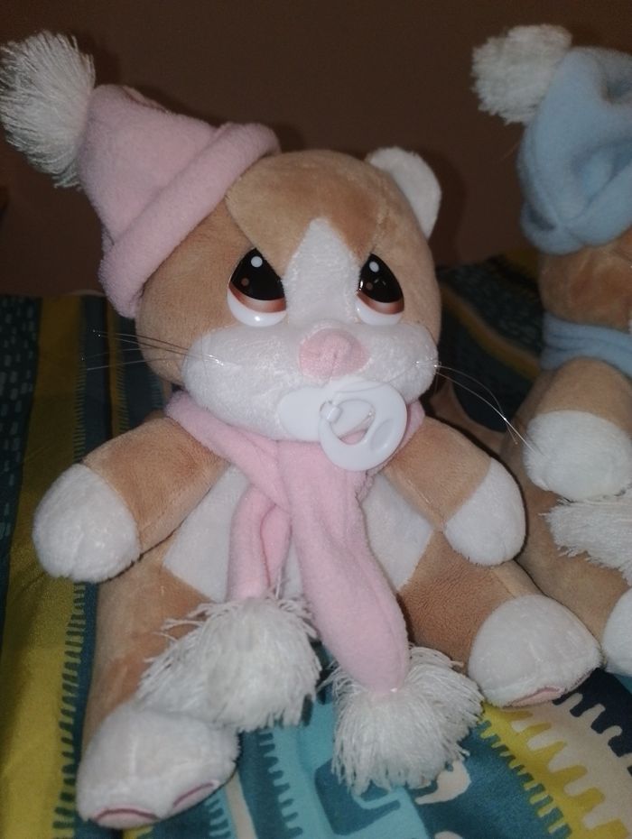 2 Peluche bébé avec tétine bonnet et écharpe rose et bleu - photo numéro 10