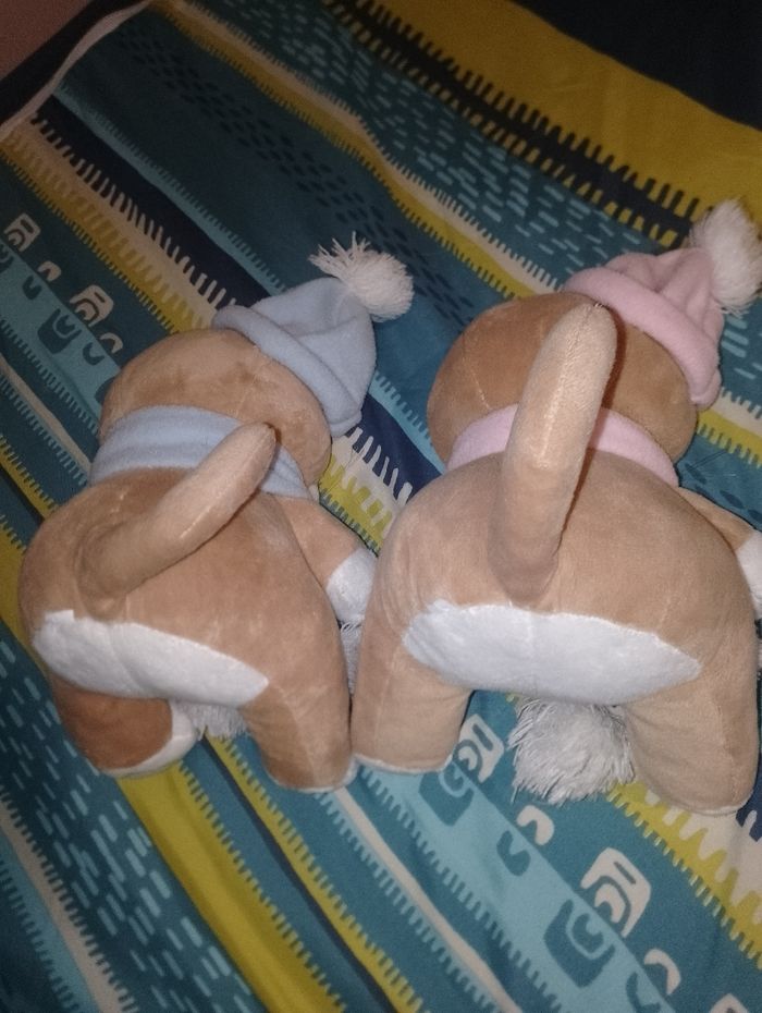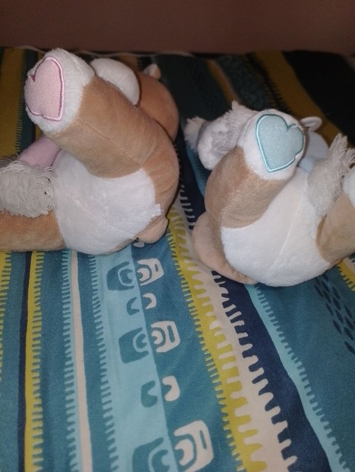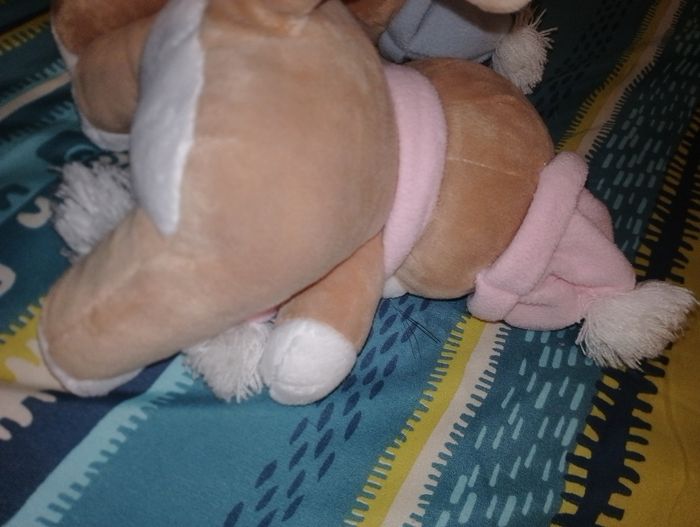 2 Peluche bébé avec tétine bonnet et écharpe rose et bleu - photo numéro 9