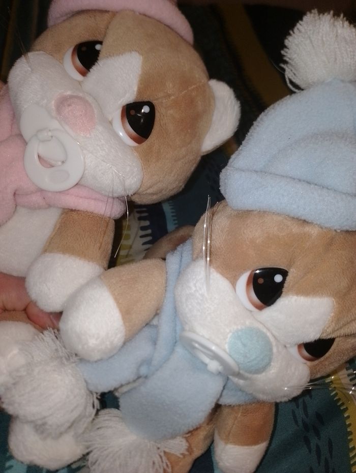 2 Peluche bébé avec tétine bonnet et écharpe rose et bleu - photo numéro 1