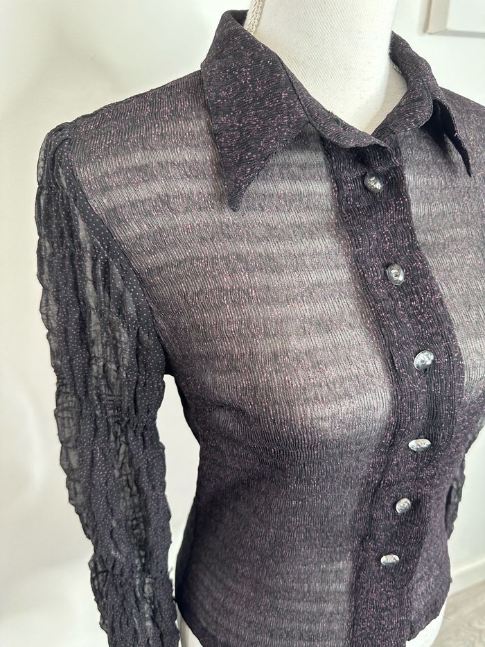 Chemisier transparent mesh plumetis violet lila Paul Brial Vintage T1 36 S - photo numéro 4