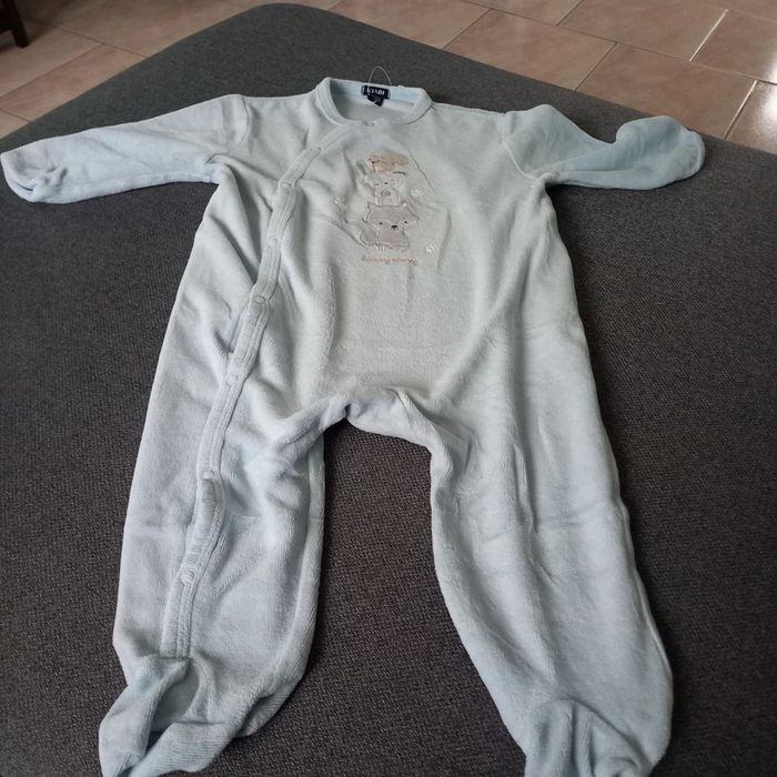 Pyjama bleu clair avec 3 petits animaux Tout doux 12 mois Kiabi