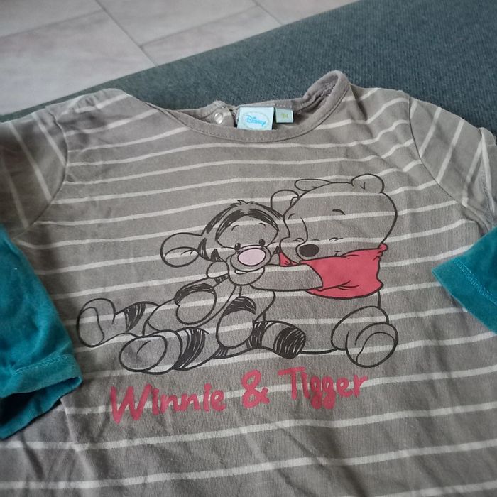 Tee shirt manches longues marron rayé avec tigrou et winnie Pression dans le dos pour un enfilage facile Disney Taille 9 mois