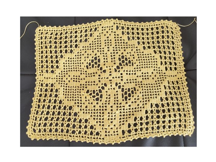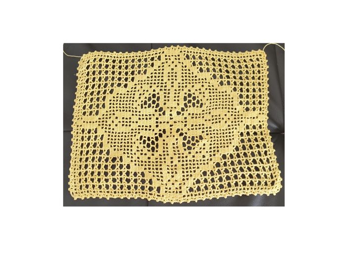 Napperon 39. Napperon jaune fait main. Longueur: 32 cm. Largeur: 27 cm. En très bon état. Sans marque. 3€. #vero38110decorations