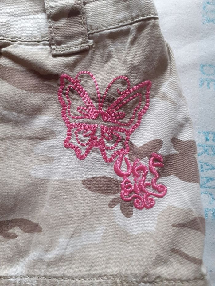 Jupe beige motif militaire et papillons roses - photo numéro 2