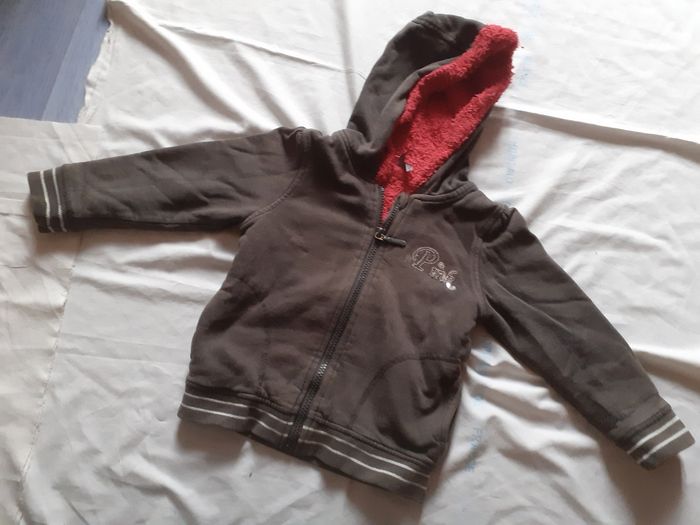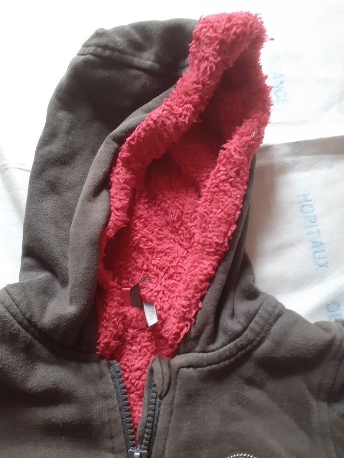 Veste grise à capuche mellotonee framboise écriture sequins argentés 4 ans