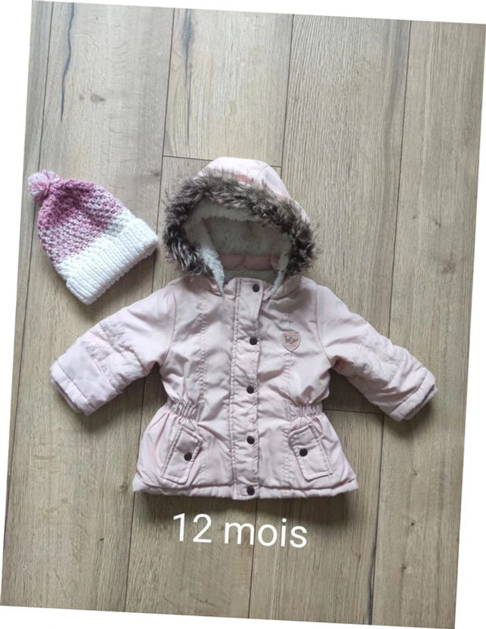 Manteau gémo rose 12 mois + bonnet