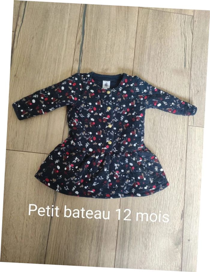 Robe petit bateau 12 mois bleu marine rouge blanc Molletonnée Boutons dorés