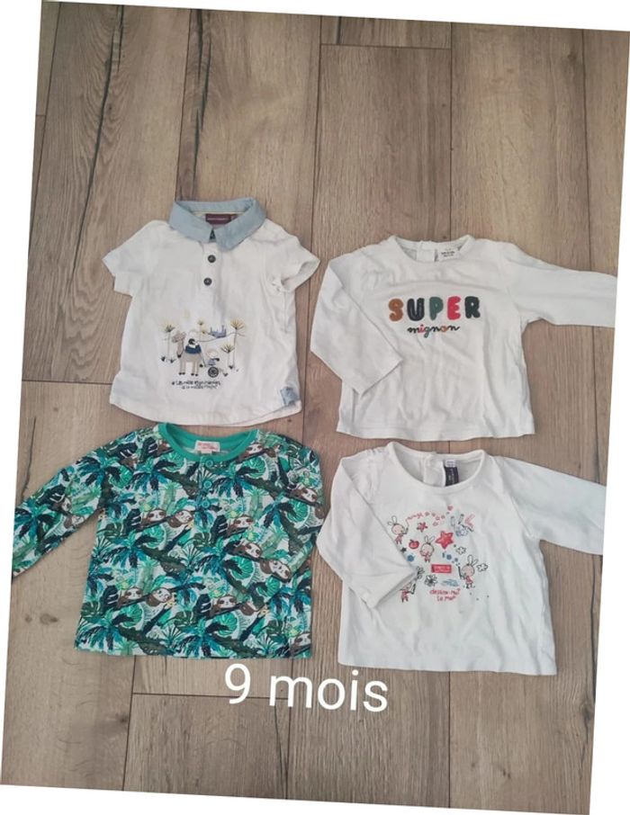 Lot 3 tee-shirts manches longues et 1 tee-shirt manches courtes 9 mois - photo numéro 1