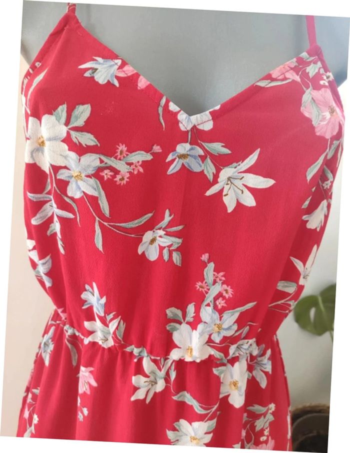 Robe longue à bretelles et à fleurs H&M rouge - photo numéro 2