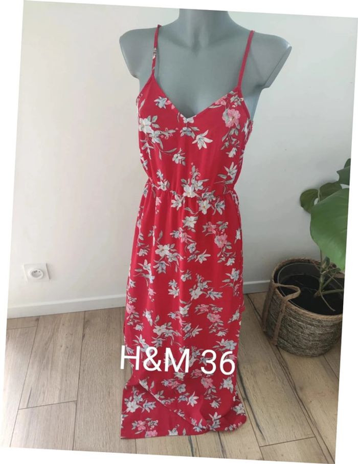 Robe longue à bretelles et à fleurs H&M rouge - photo numéro 1