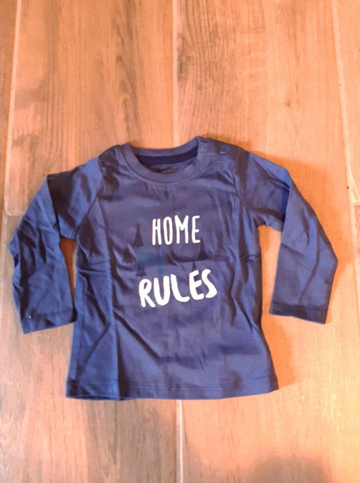 NEUF, jamais porté ni même passé en machine T-shirt manches longues Mention "My home My rules" Motif sapins bleu Lupilu 6/12 mois - 74/80cm #sandrine_6mois #sandrine_9mois #sandrine_12mois #sandrine_neuf #sandrine_cadeau #sandrine_bebe