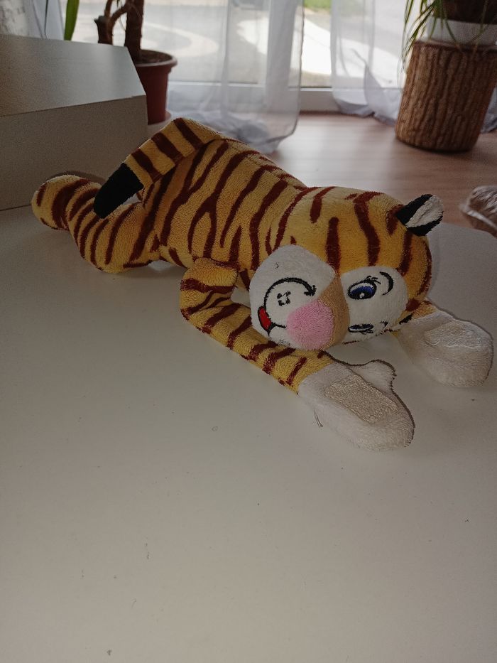 Doudou tigre 🐅 , avec des scratch sur les main pour enroulé une petite couverture