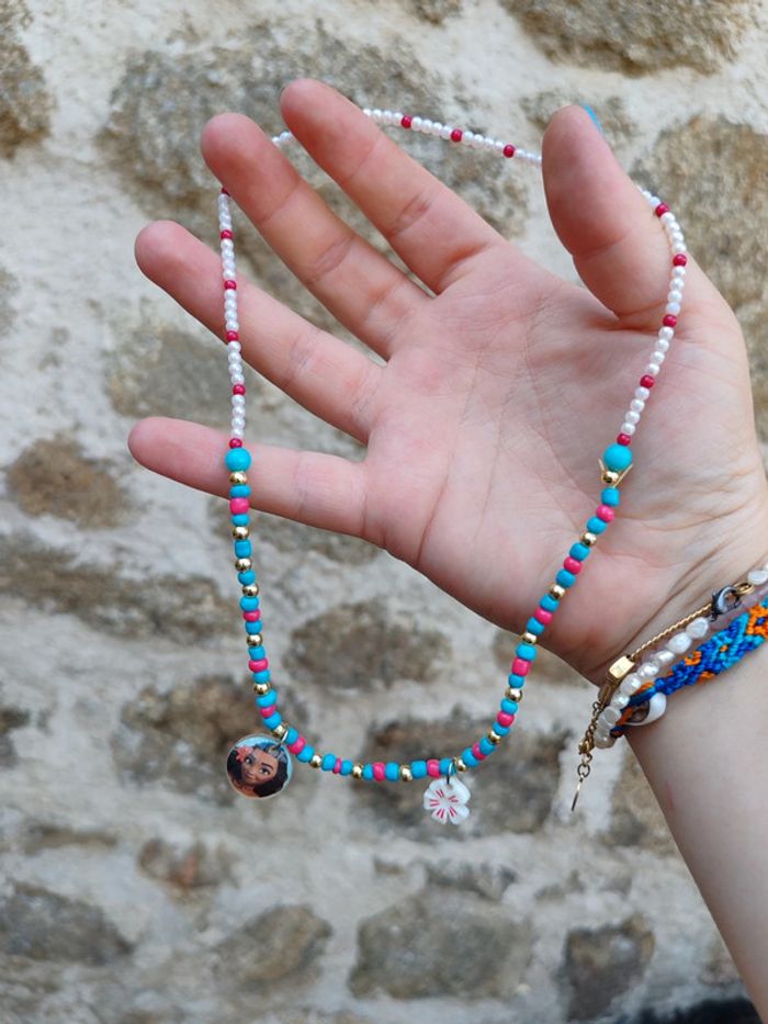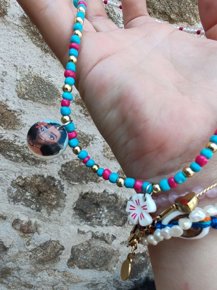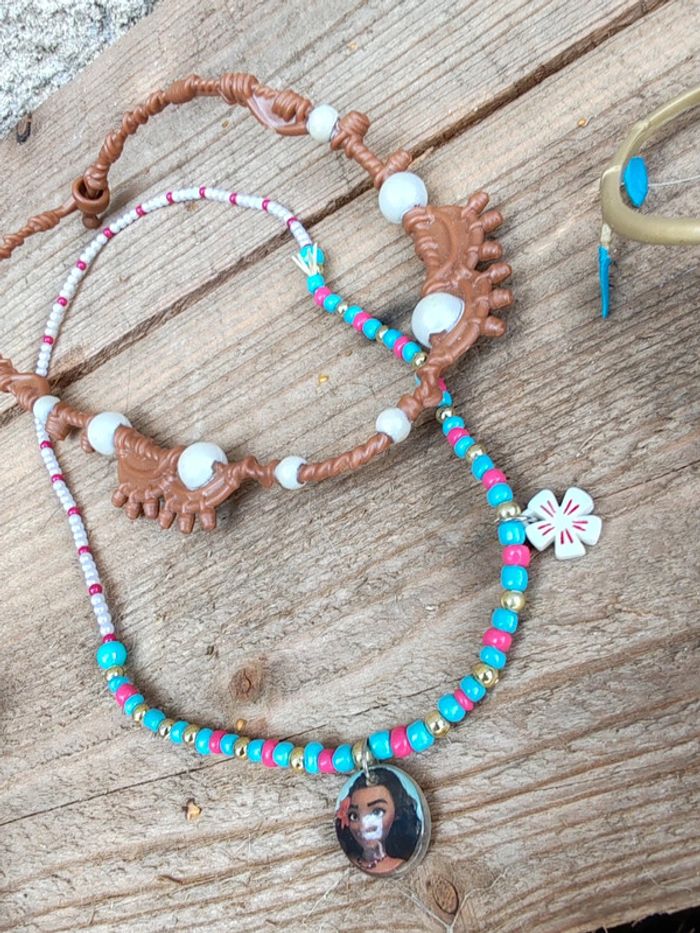 Lot de bijoux pour enfant Thème Vaiana (Moana) Un collier élastique en perles Un collier en plastique Un bracelet en plastique Très bon état ➡️ #ursullabuffaydisney #ursullabuffaybijoux
