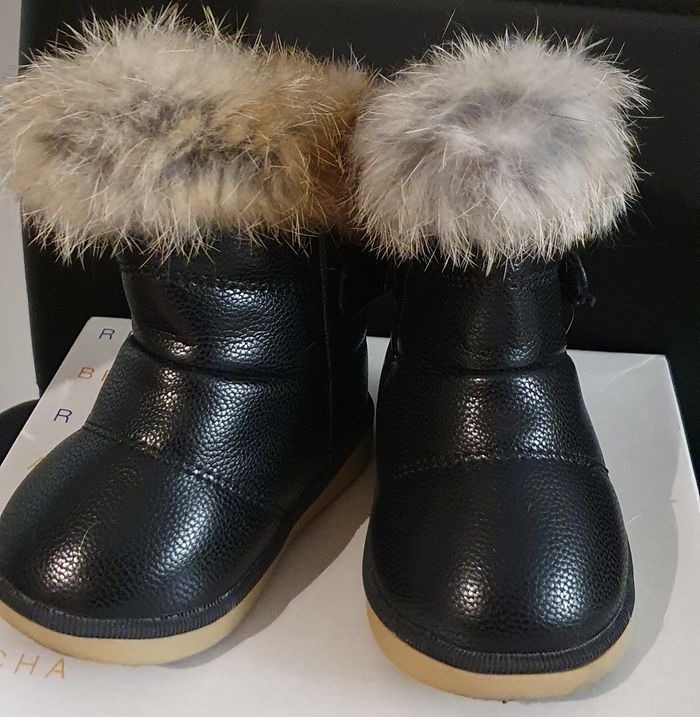 Les bottes sont en très bon état, taille 20, Matériau extérieur - Synthétique Cuir /bottes Imperméable, Chaude et facile à nettoyer. Doublure: l'interior fourrure synthétique.