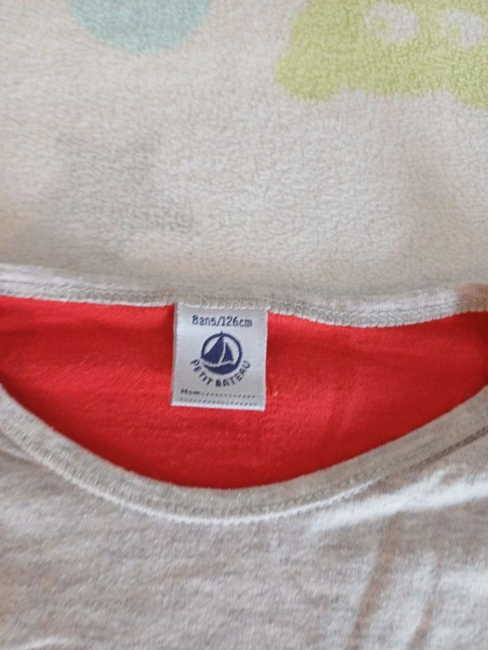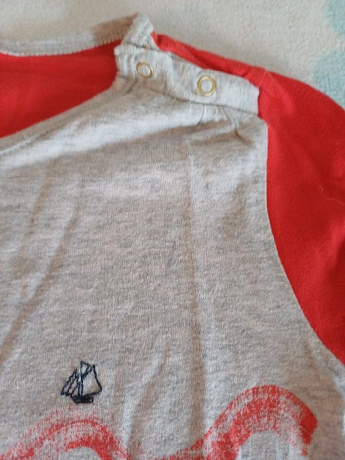 T-shirt gris et rouge Très bon état, petit trait de stylo 🖊 8 ans Petit bateau #8ans #8ansfille #8anslexou_77 #petitbateaufille8ans