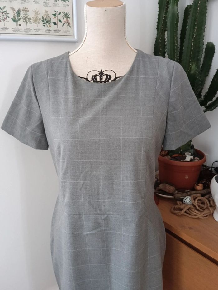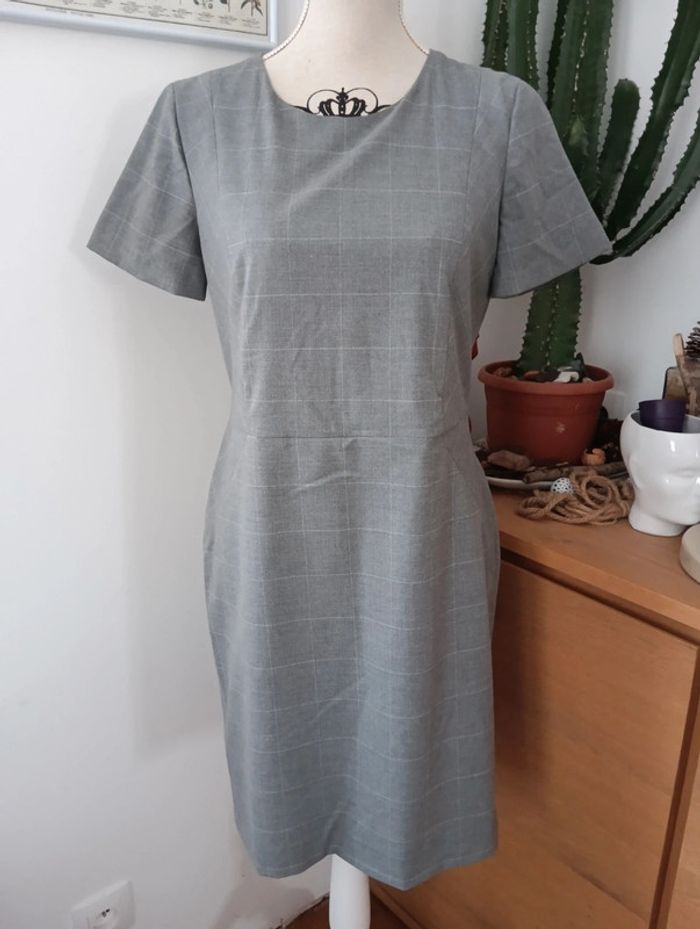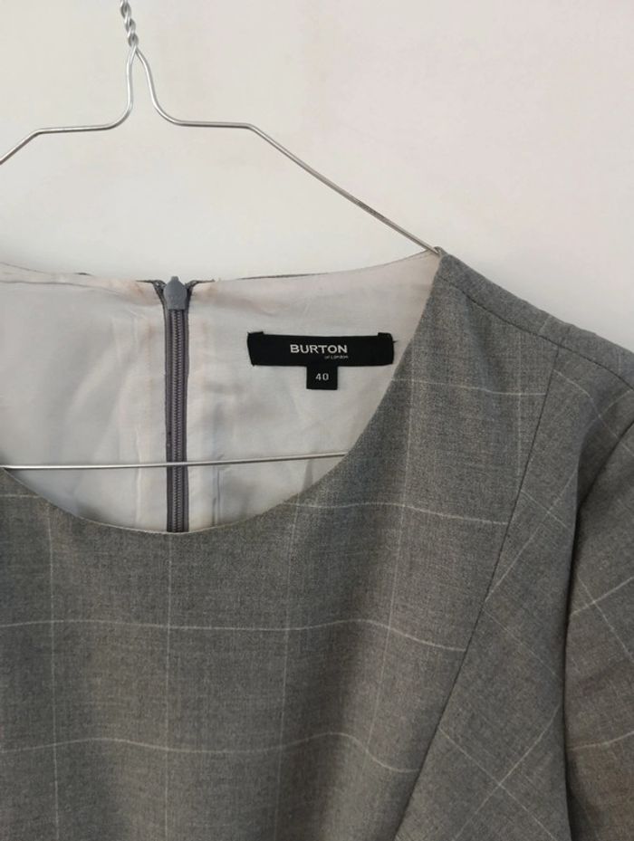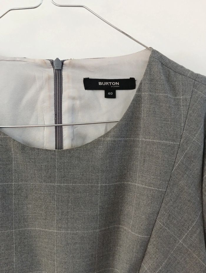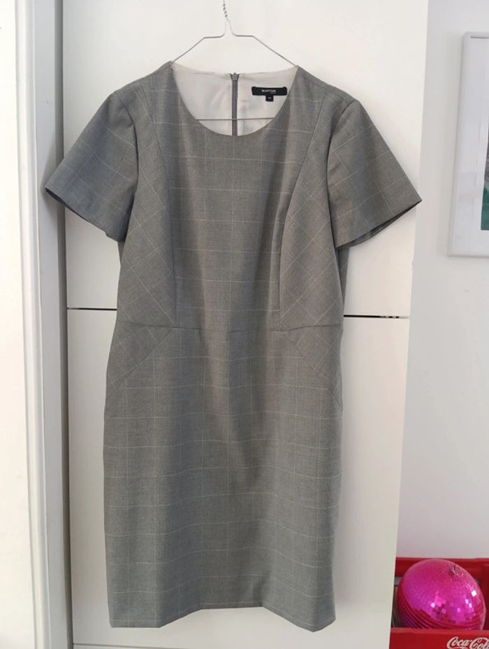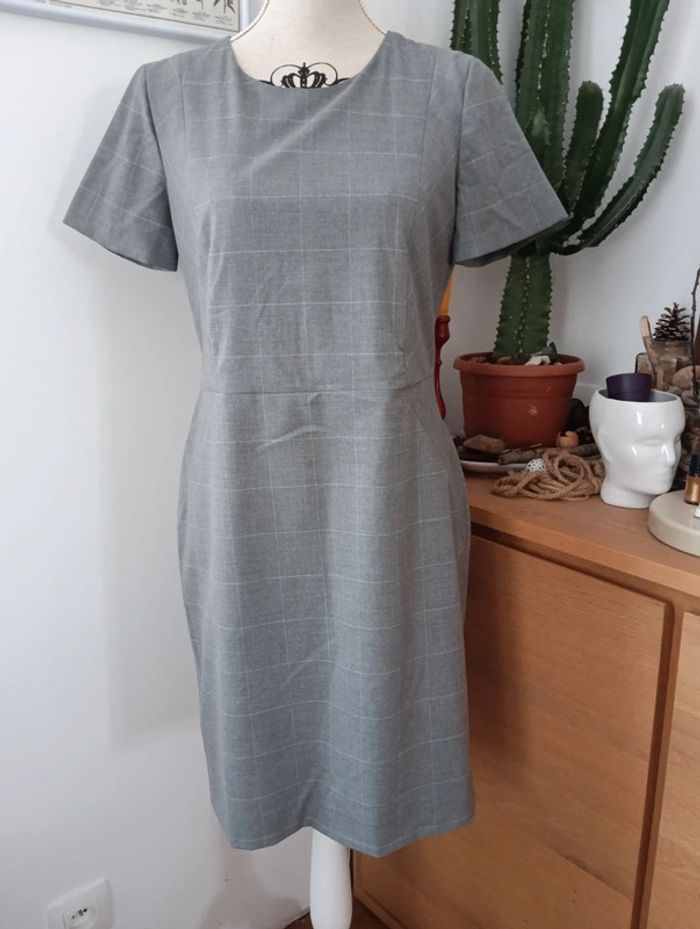 Robe classique grise Burton taille 40 Fins carreaux tracés blanc Fermeture au dos Très classe et élégante