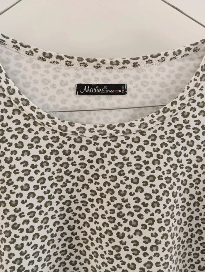 Top vintage léopard extensible taille 42 estimée Made in France - Marine d'amour Matière extensible Epaules 40cm Aisselles 50cm Longueur 56cm