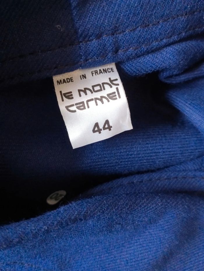 Combinaison vintage bleu de travail Taille 44 Neuve Fermeture dorée 100% coton Le mont Carmel - Made in France Mesures épaules 49cm Aisselles 56cm Taille 50cm Longueur 153cm