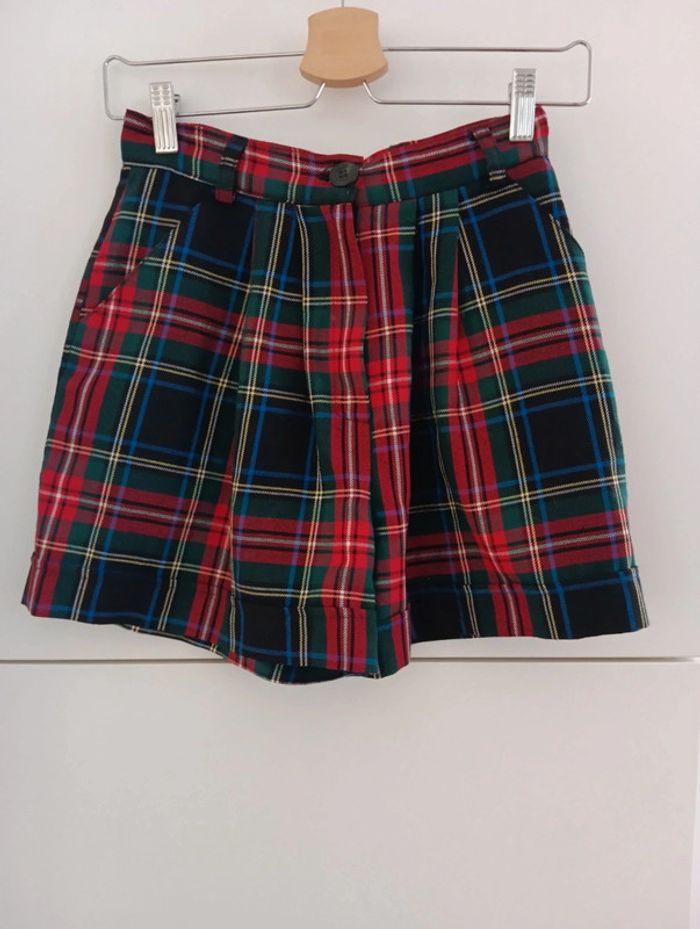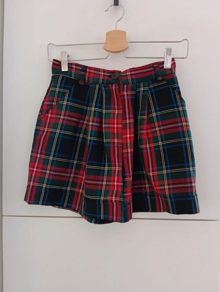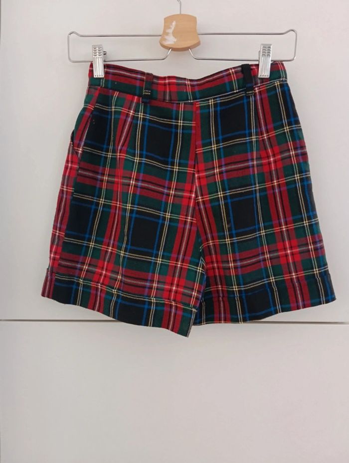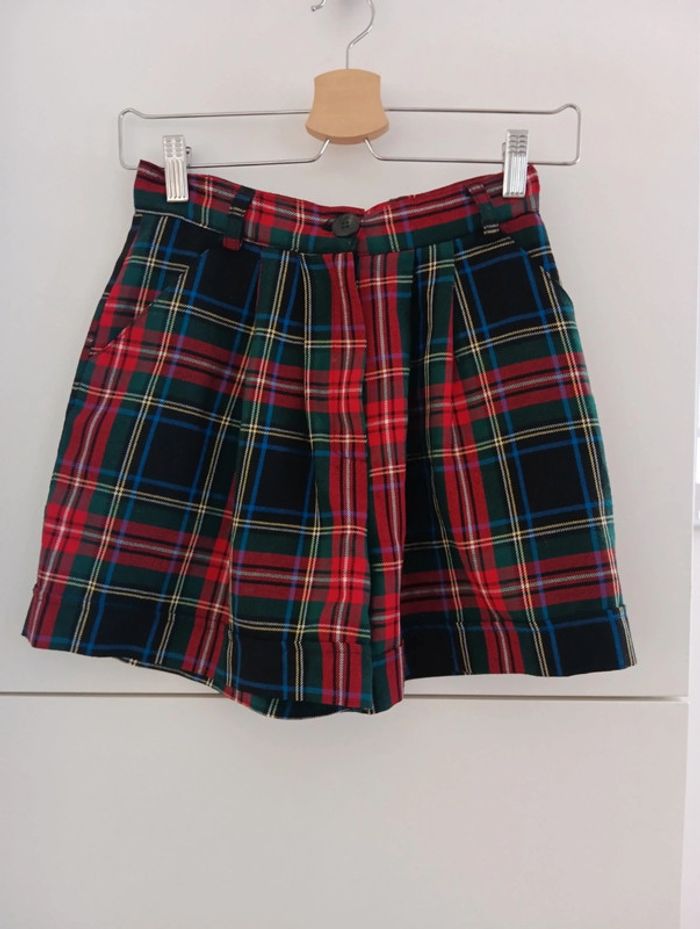 Short taille haute tartan vintage Made in France Nafta-line Passants et revers Mesures Taille 32cm Longueur 38cm De la taille à l'entrejambe 32cm