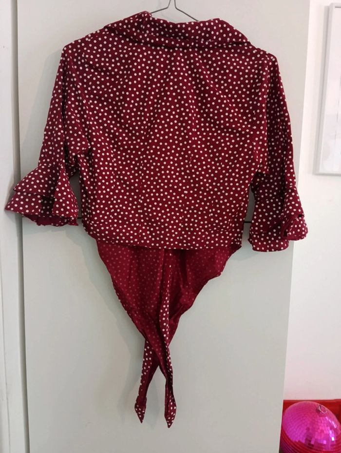 Chemise crop vintage à pois à nouer manches volantées - photo numéro 2
