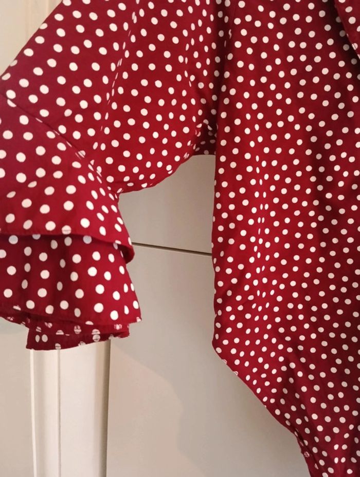 Chemise crop vintage à pois à nouer manches volantées - photo numéro 11