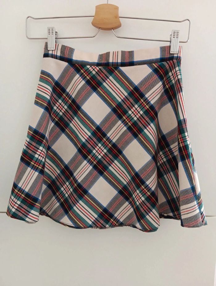 Jupe courte vintage évasée tartan taille 32/34 Les cotés ont été repris (voir photos) Taille 31cm Longueur 39cm