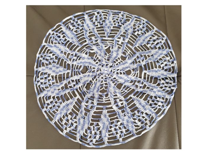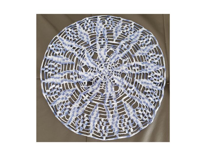 Napperon 40. Napperon différents tons de bleus fait main. Diamètre: 36 cm. En très bon état. Sans marque. 3€. #vero38110decorations