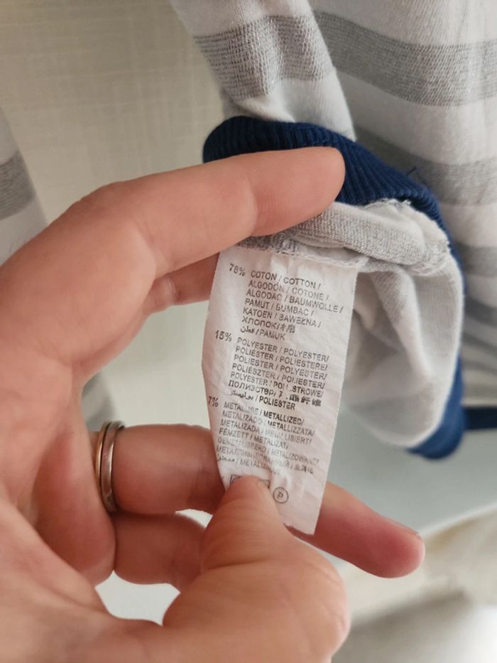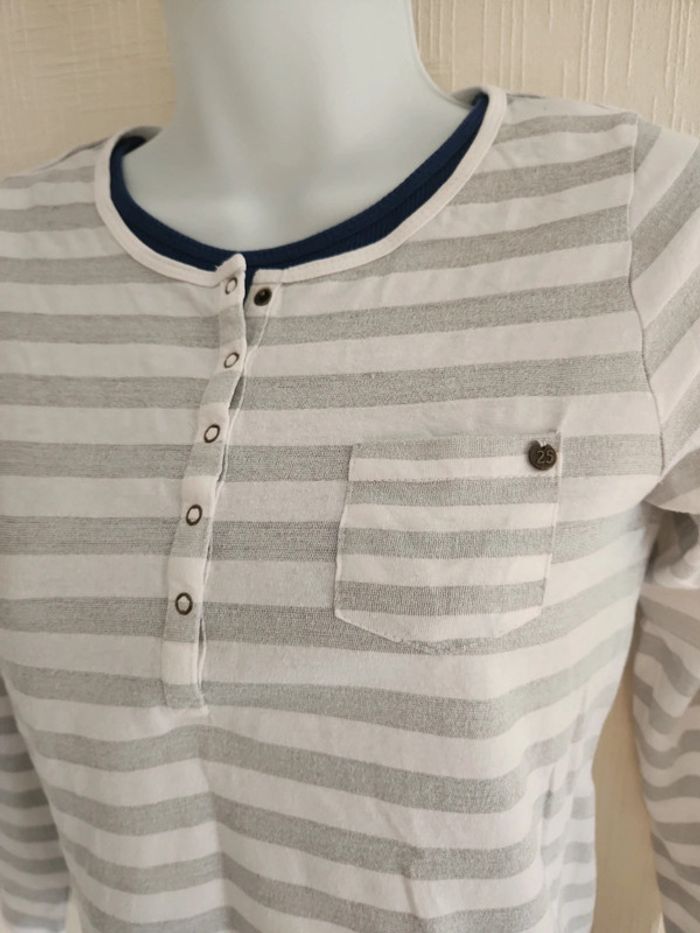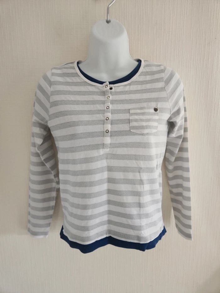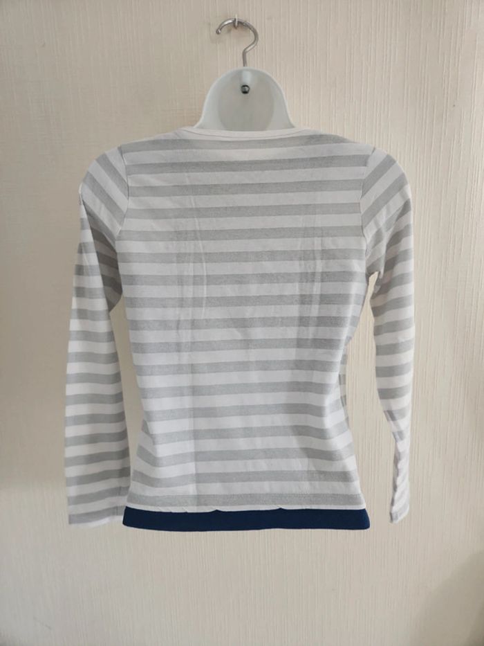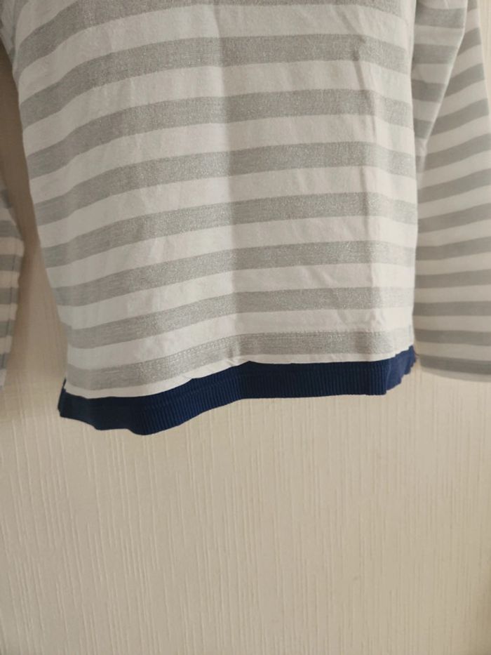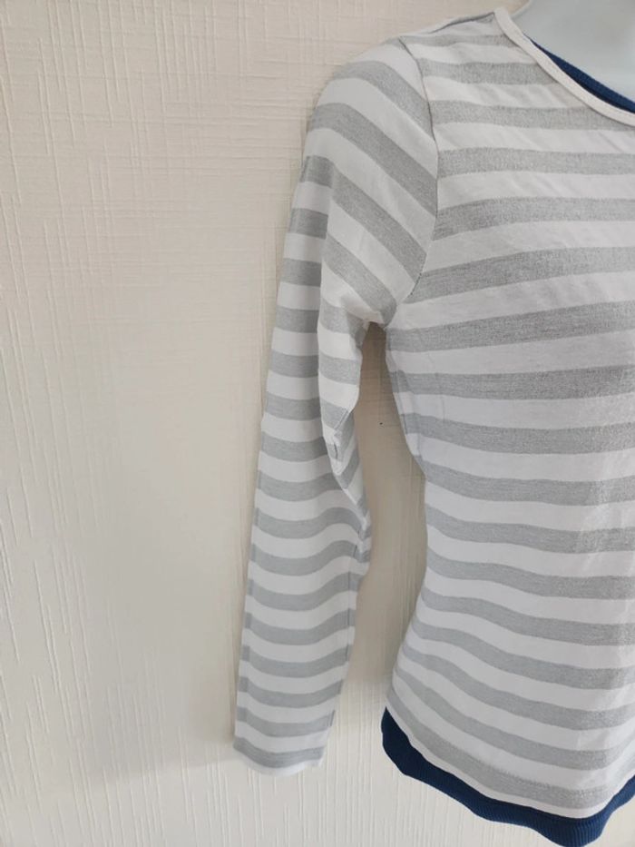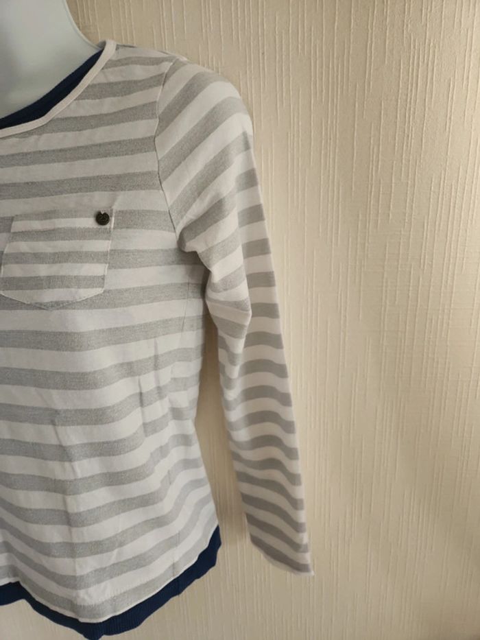 #pseudodofille12ans #bilook12ans #bilook #teeshirtmancheslongues #blanc #rayures #argenté #bleumarine #trompel'oeil