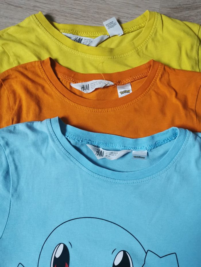 Lot de 3 T-shirts Pokémons : Salamèche, Carapuce et Pikatchu. Le lot n’est pas dissociable, comporte des t-shirts à manches courtes, en coton orange, jaune et bleu imprimés Pokémons, pour 6-8 ans, 122/128 cm, H&M. Tous sont en très bon état comme neufs, sauf le bleu qui a une toute petite tache devant et l’ourlet n’est pas cousu au dos (défaut de qualité), poids du lot fait 208g. Pensez à faire des lots afin de bénéficier des remises que j'ai régulièrement sur ma page. #lotdetshirts #tshirtpokemon #pokemon #lotvetements #pokemonsalameche #pokemonpikatchu #pokemoncarapuce