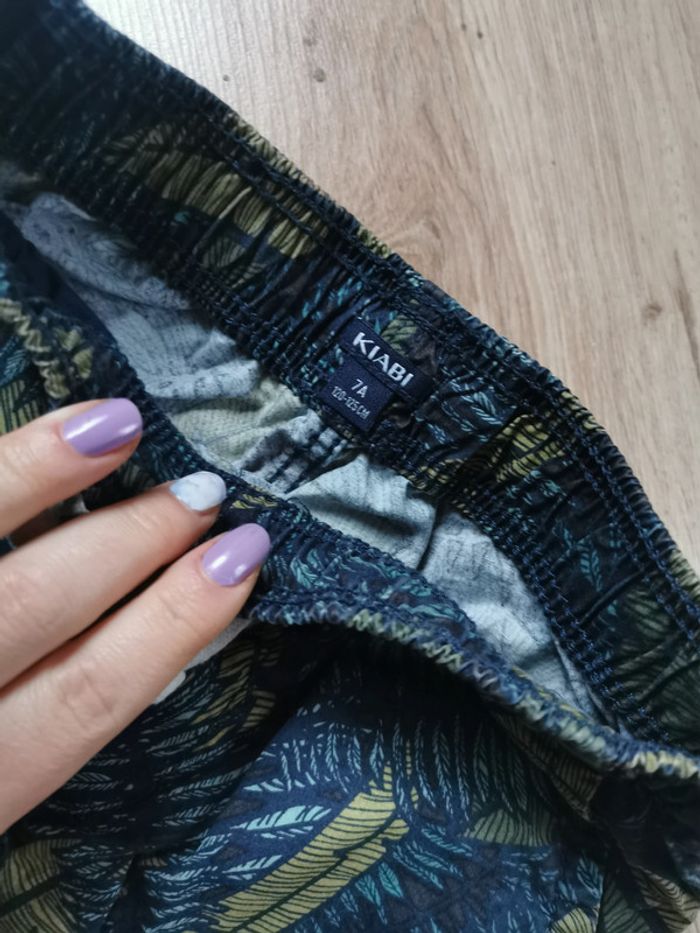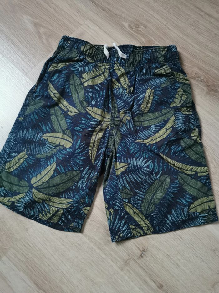 Short bermuda bleu vert kaki 7 ans 120/125 cm, Kiabi, en coton à motifs feuillage, poches latérale, ceinture élastique, en très bon état, poids 102g. #short #shortenfant #short7ans #bermuda #bermuda7ans #kiabi