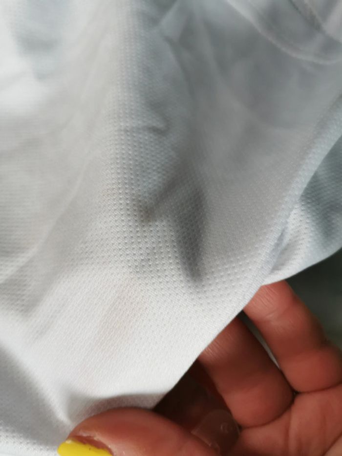 Short sport blanc 7 Paris St Germain, taché derrière, bon état général, en polyester 6-7 ans, poids 65g. #shortsport #shortblanc #parisstgermain
