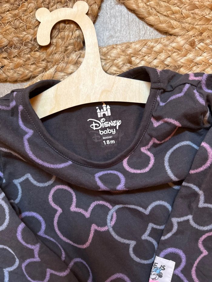 Robe en coton manches longues neuve Couleur grise avec motifs de tête de Mickey Jamais portée Taille 18 mois