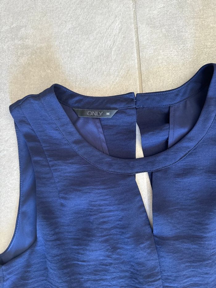 Robe Only couleur bleue marine Portée 1 fois Poche sur côté Doublure à l intérieur Ouverte dans le dos Taille 36 Longueur genoux