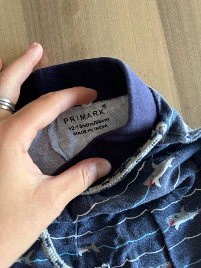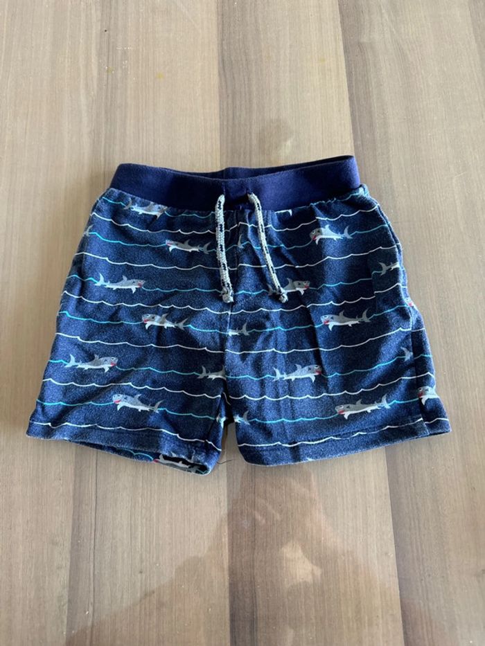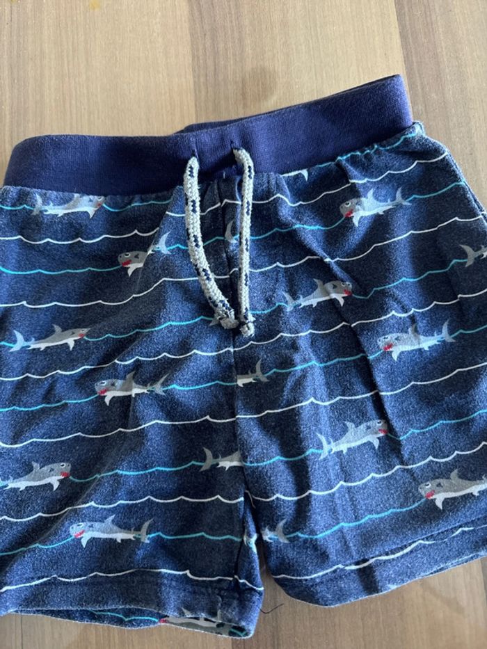 Short en coton en très bon état Couleur bleu marine avec motifs de requins Taille 18 mois Marque Primark