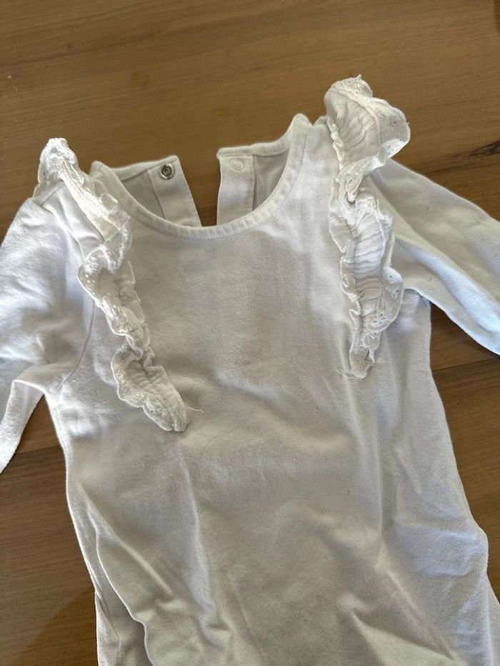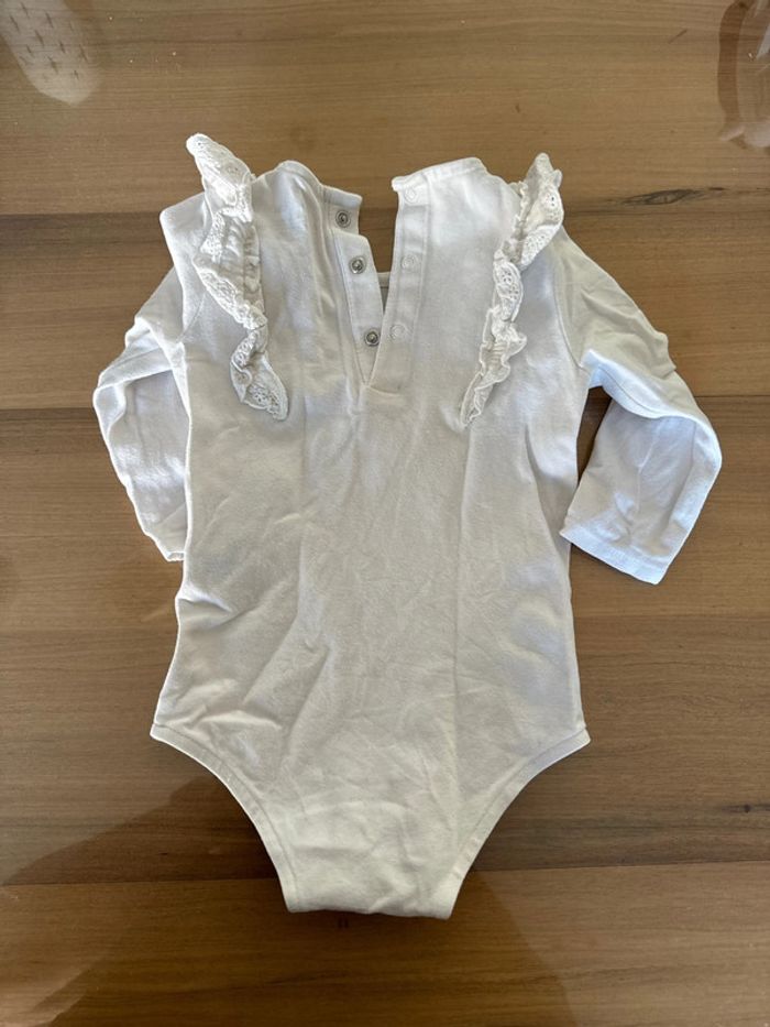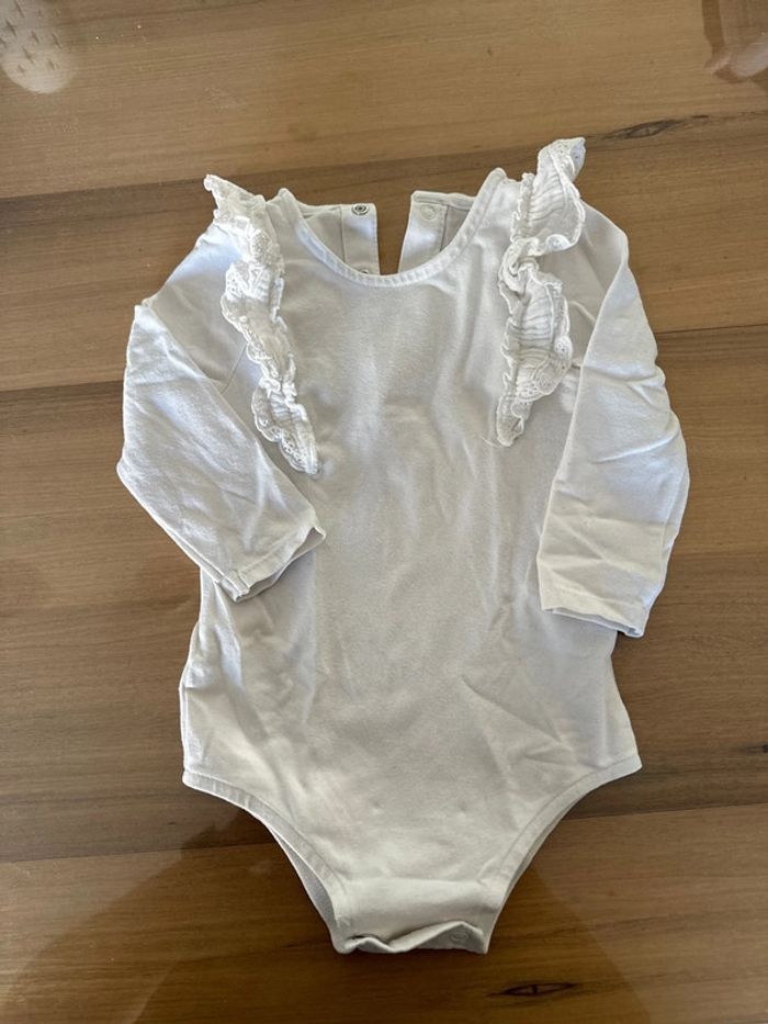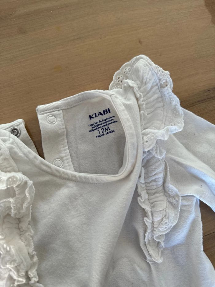 Bodie blanc en coton manches longues Dentelle aux épaules Neuf jamais porté juste lavé Taille 12 mois Marque Kiabi