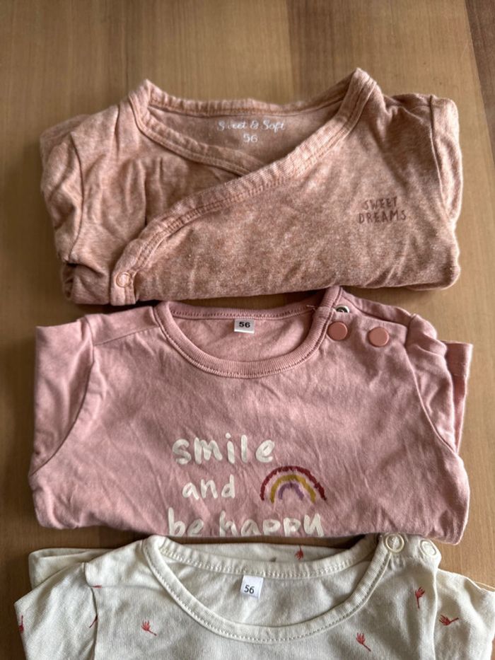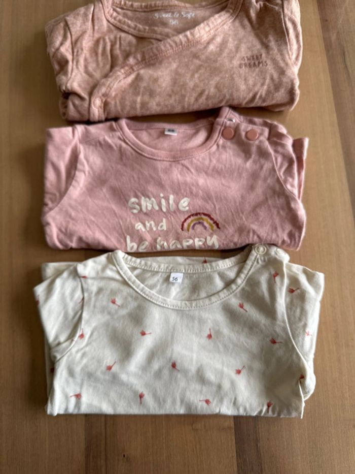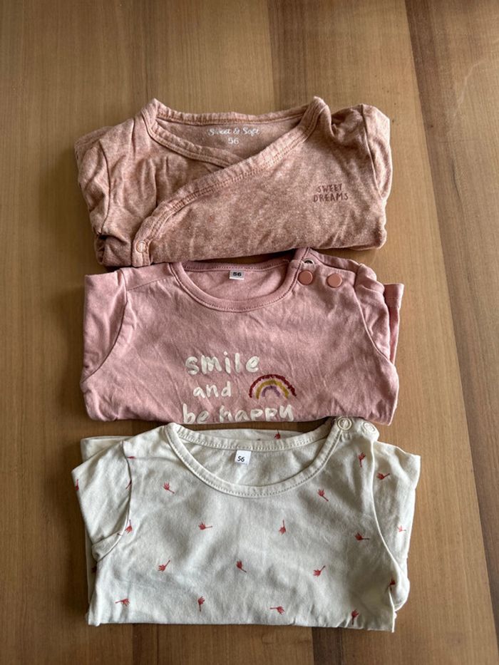 Lot 3 T-shirts neufs en coton manches longues Couleur blanc, rose avec motifs (voir photo) Marque Zeeman Taille 3 mois Le premier s ouvre intégralement par pressions
