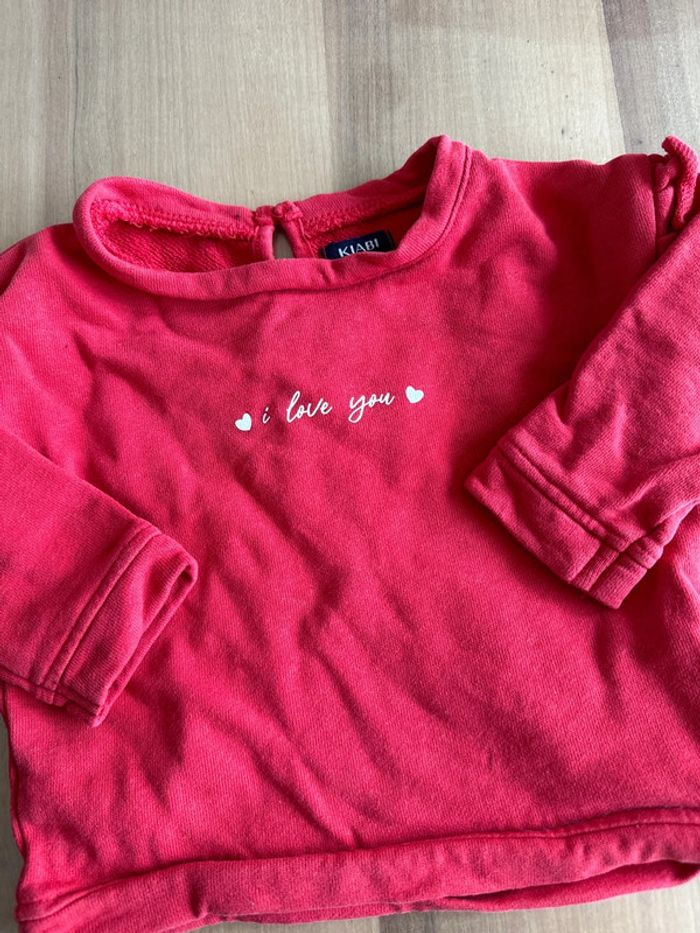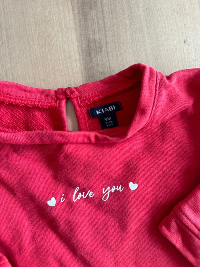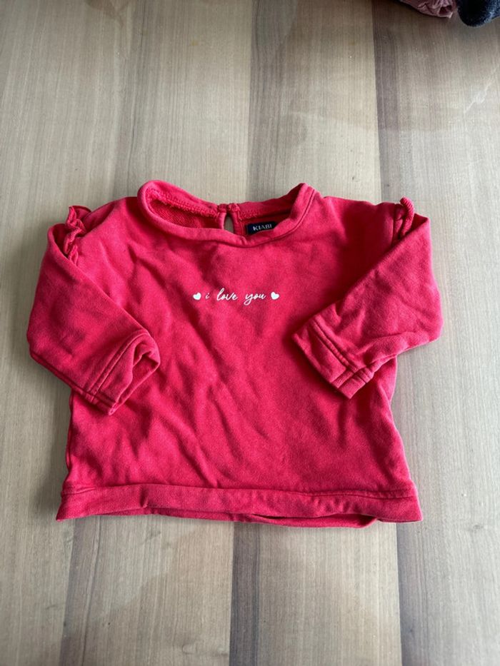 Sweat rouge avec écriture blanche Neuf jamais porté Taille 9 mois Marque Kiabi
