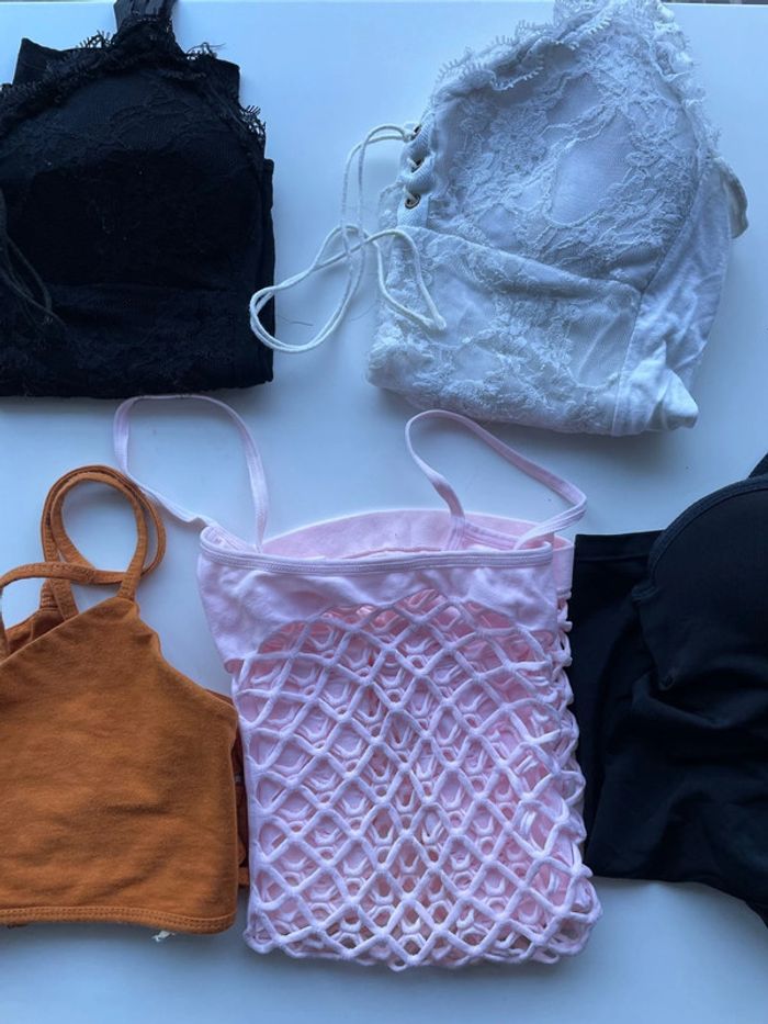 #zezettedelavegaS Un rose filet neuf Un noir et blanc bon état Un noir très bon état Un marron taille M bon état
