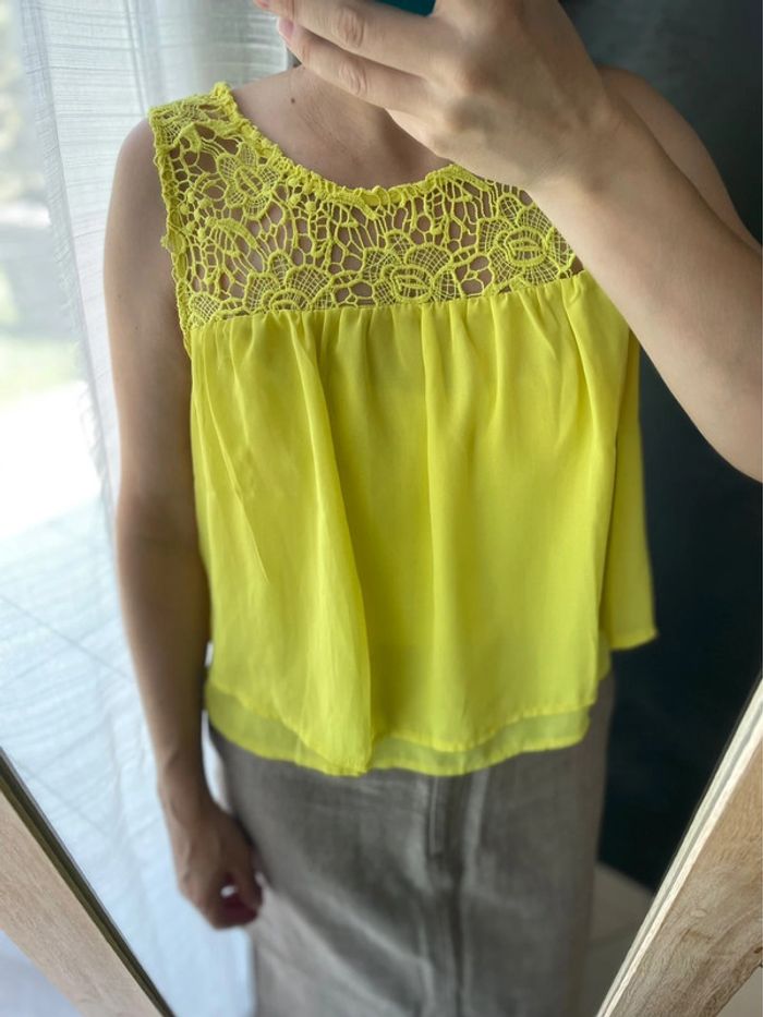 Débardeur jaune dentelle - photo numéro 1