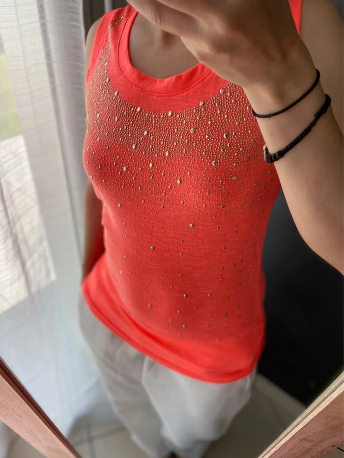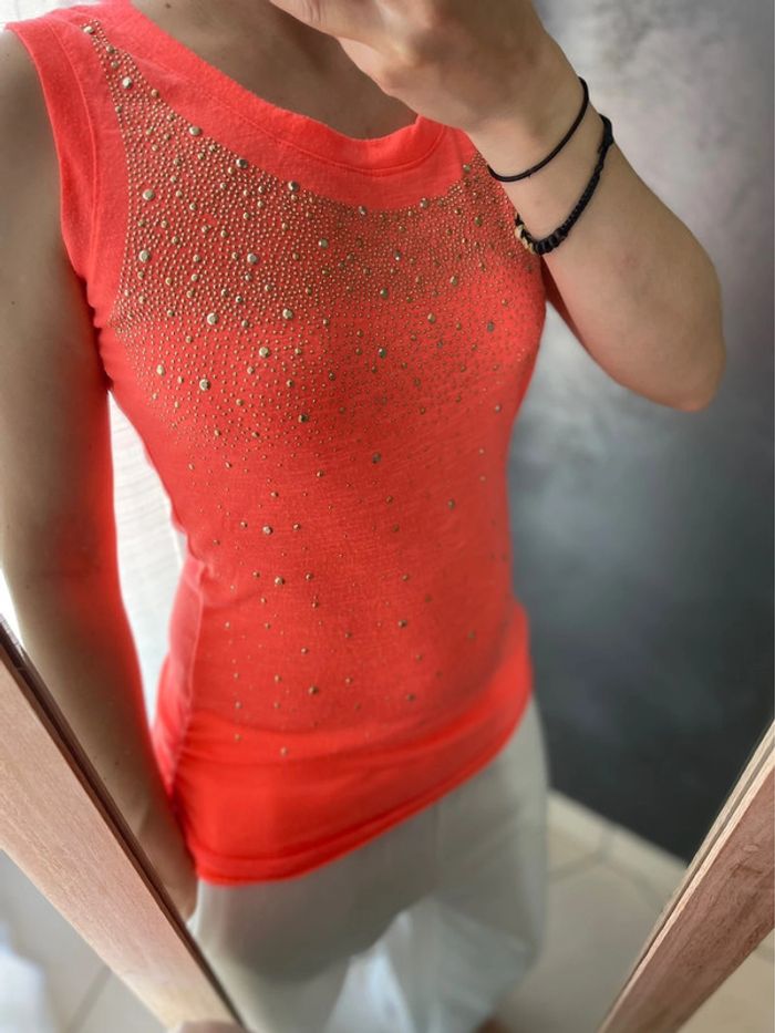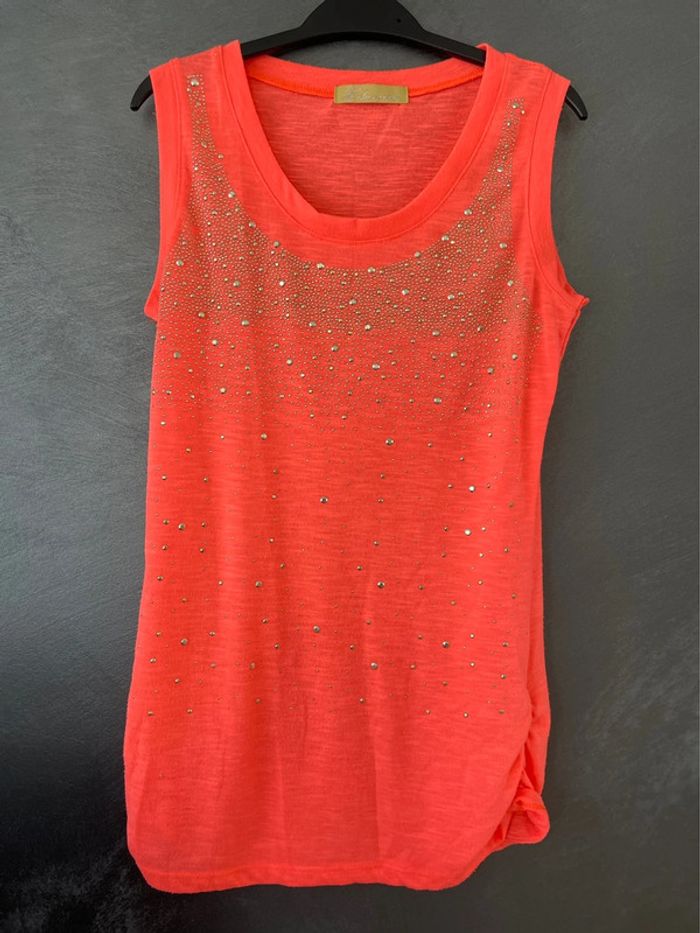 Débardeur orange strass - photo numéro 1