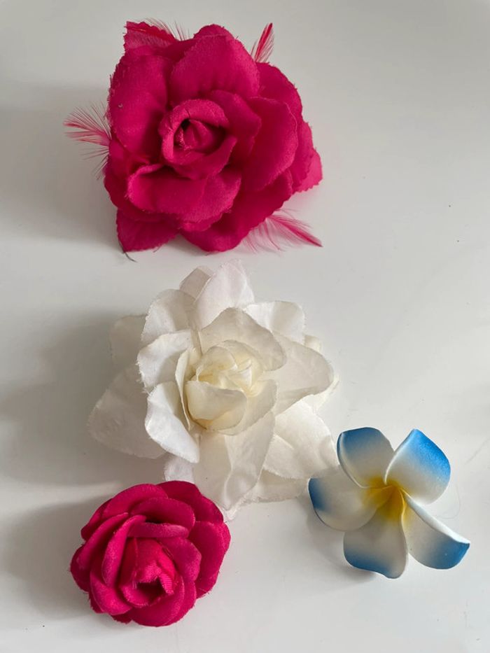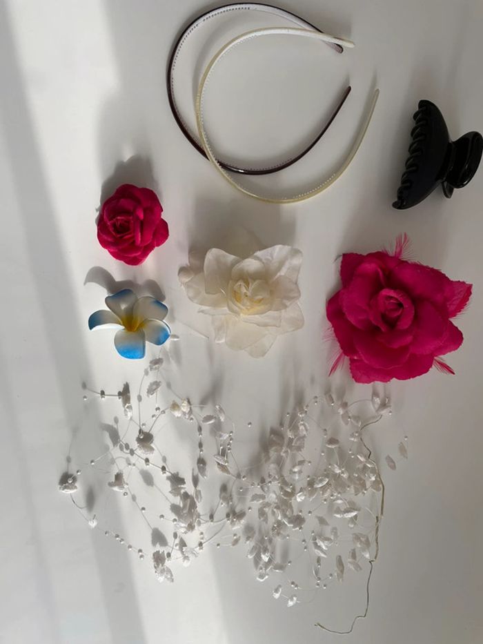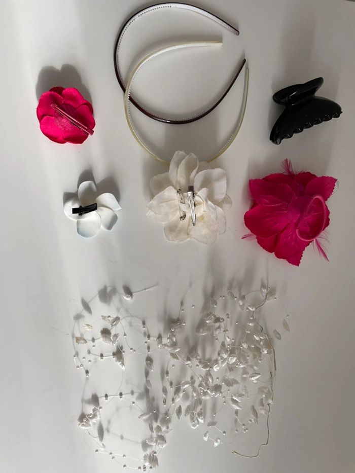 #zezettedelavegabijoux Deux serre tête Une pince noir Trois barrette fleur Un chouchou fleur